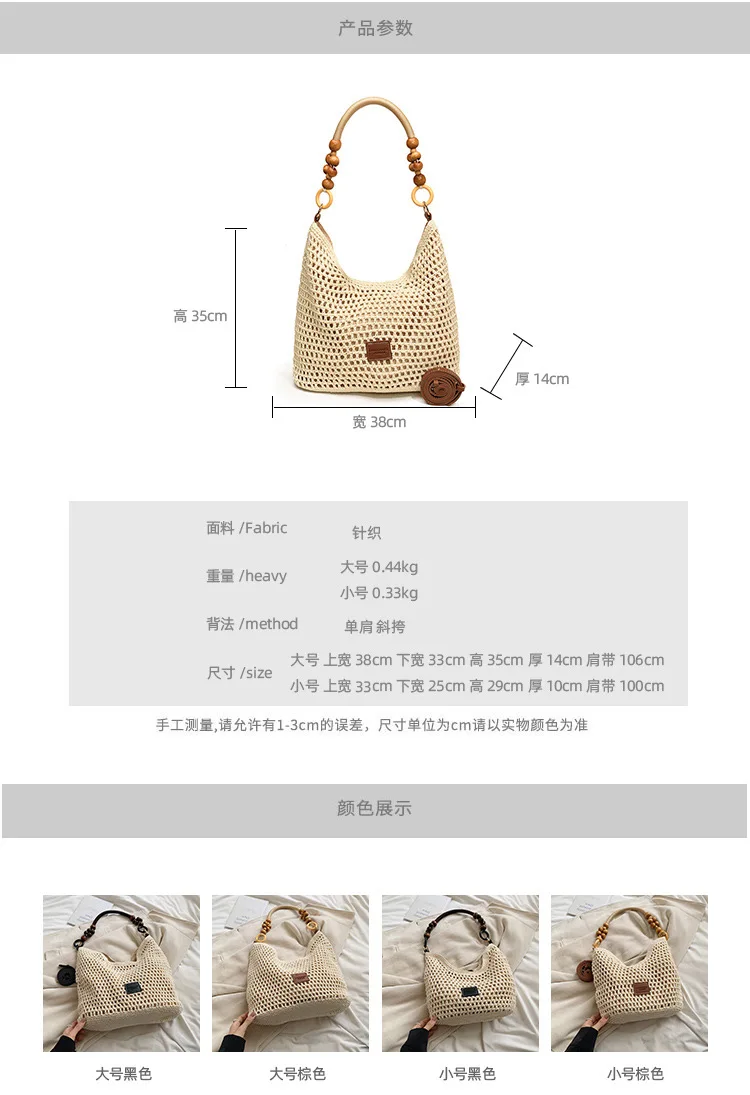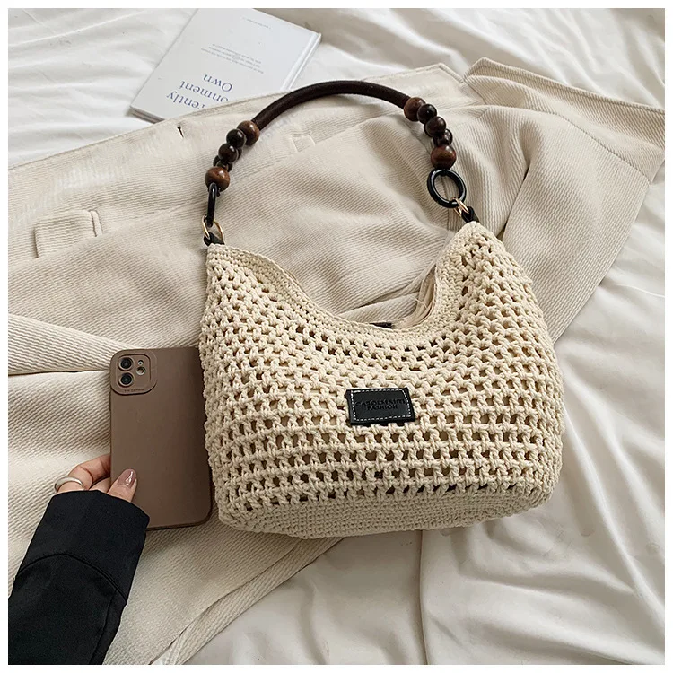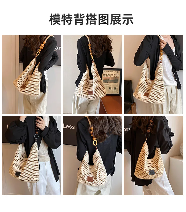Beach Vacation Woven Bags for Women, 2025 New Lace Knit Handbag, Large Capacity Single Shoulder Armpit